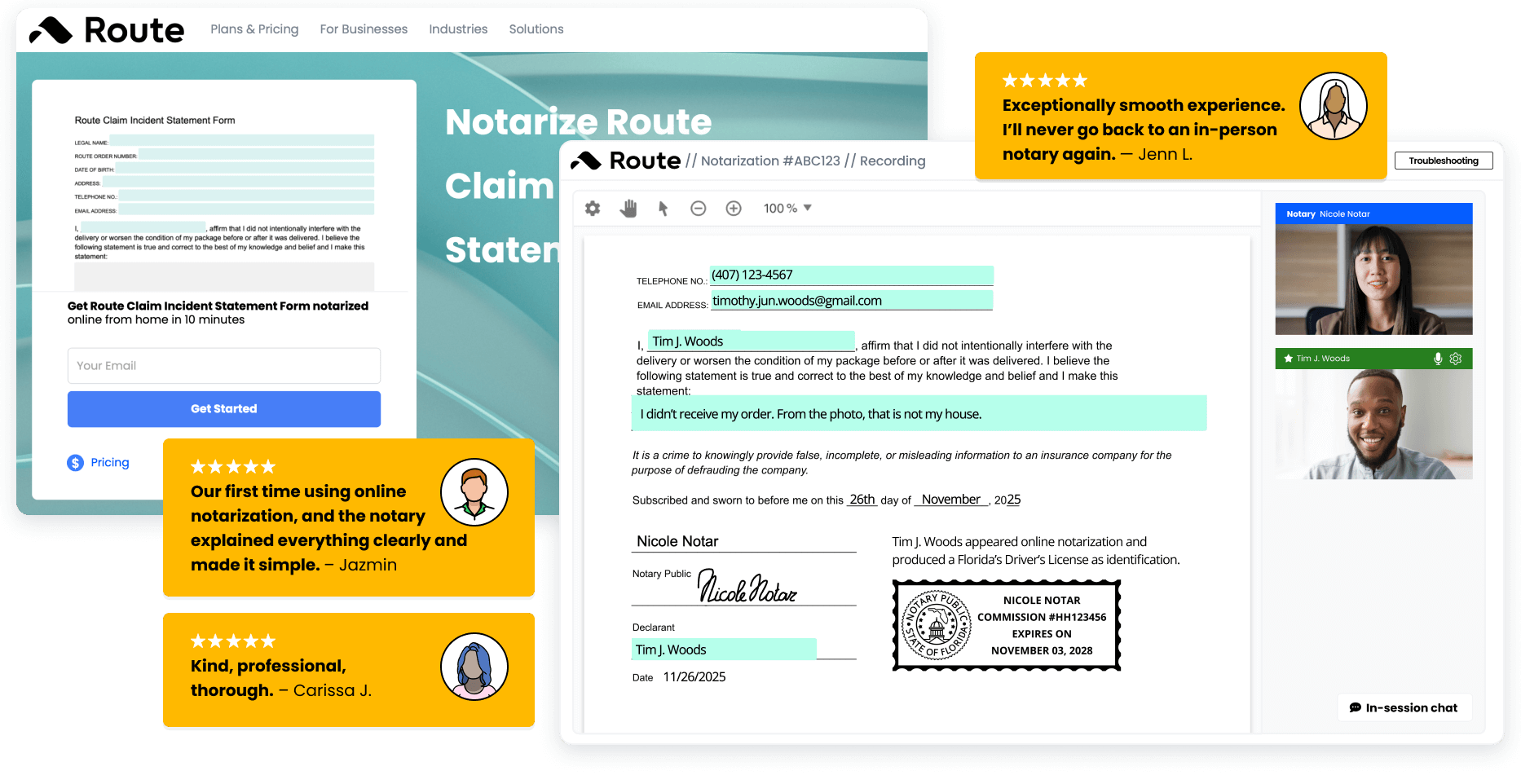 40% reduction in fraud. Major lift in CSAT.Route embedded OneNotary into its claims workflow, enabling customers to complete their process in minutes.