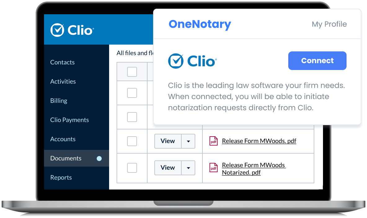 All you need is a Clio account and a OneNotary subscription