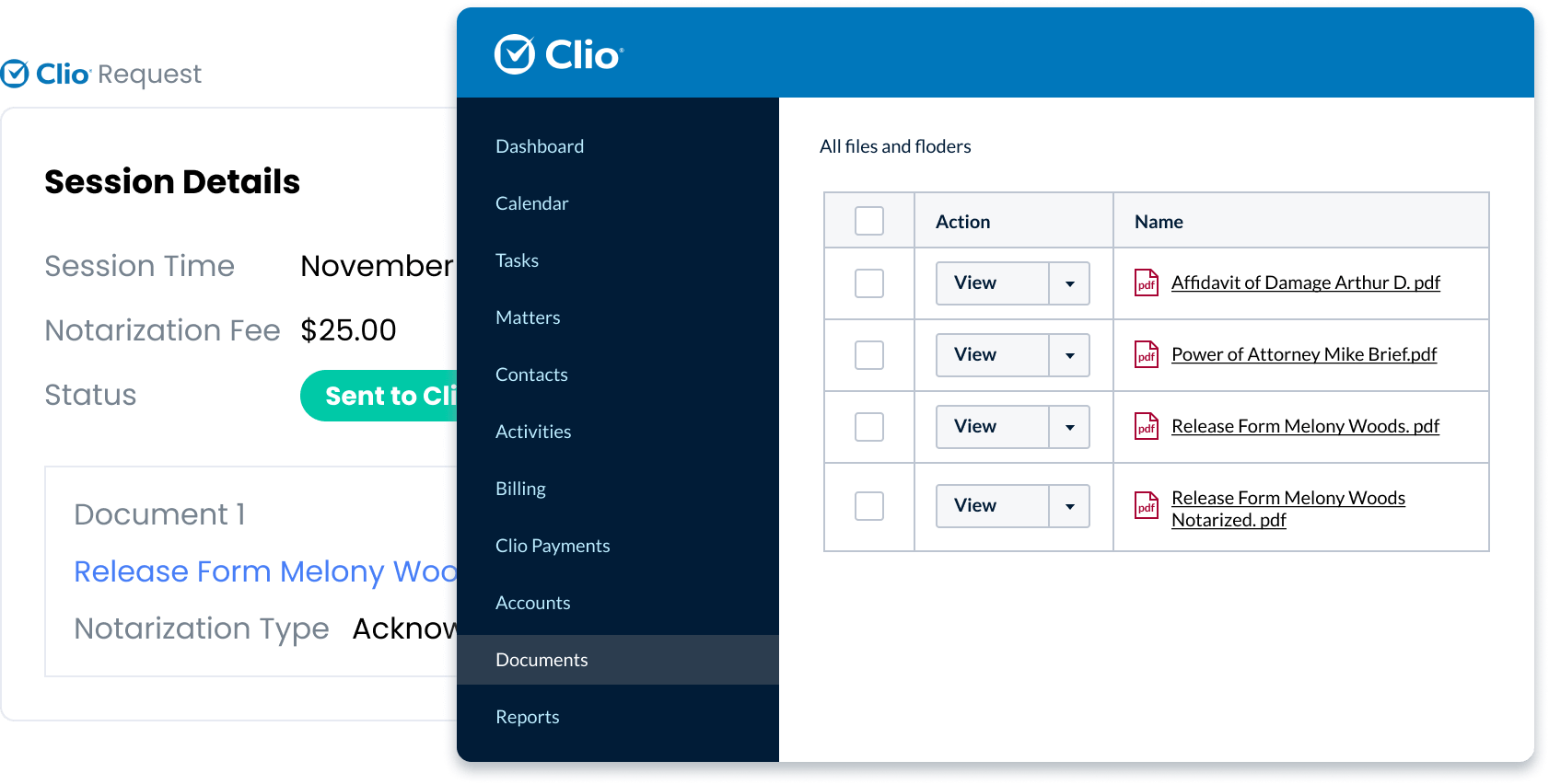 You are all set. Create notarization requests directly from Clio